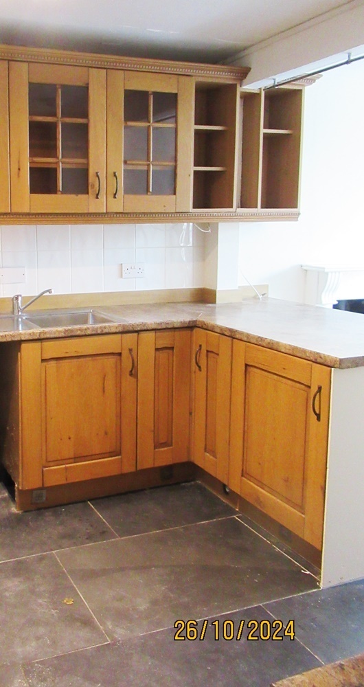 Dining kitchen with wooden flooring, including a range of brand new kitchen units which includes